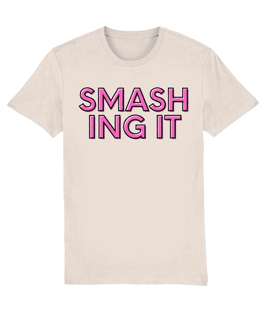 Smashing It T-Shirt (pink text) - Soft Yellow/Pink/Ecru